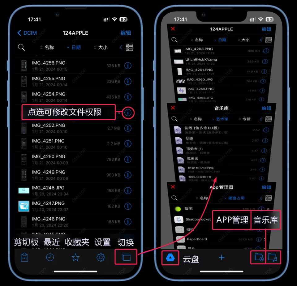 此功能类似于win系统内的文件类型以什么默认软件打开,无需修改预设即可使用。Filza内置多种文件查看器,它的编辑功能同样非常强大,支持解压、压缩,图片、视频、音频播放,App修改安装,文本编辑,各种脚本文件等等各种功能。