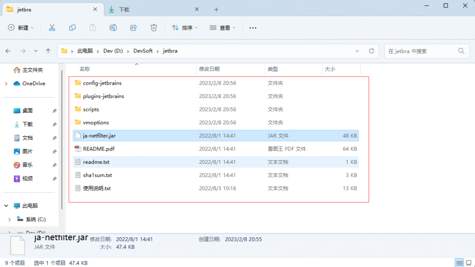 1. 将永久激活插件 jetbra(ja-netfilter-all) 放固定位置,例如:D:\DevSoft\jetbra\ja-netfilter.jar,注意:
