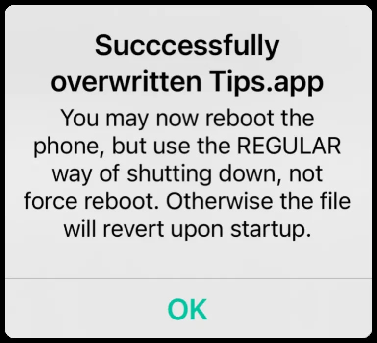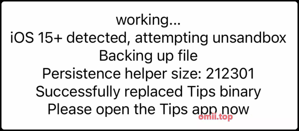 如果它显示【Successfully replaced Tips binary】则顺利进入下一步,