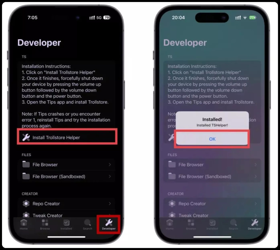 ⑥中间点击【Install Trollstpre Helper】